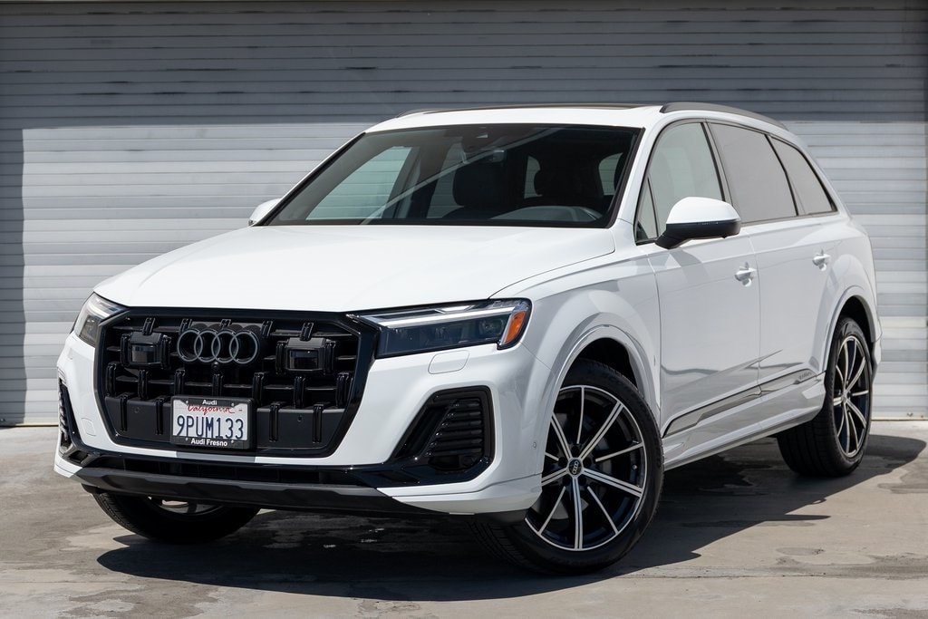 Certified. White 2025 Audi Q7 45 Premium Plus quattro quattro 8-Speed Automatic with Tiptronic 2.0L 4-Cylinder TFSI 21" Wheel Package, Anthracite Gray Audi Rings, Audi Beam Rings, Bang & Olufsen Premium Sound System w/3D Sound, Black Door Blades, Black Exterior Trim, Black Grille, Black Optic Package, Black Roof Rails, Black Window Surrounds, Convenience Package, Dark Chrome Exhaust Tips, Heated Steering Wheel, Illuminated Door Sills, LED Interior Lighting Package Plus, Power moonroof: Panoramic, Premium Plus Package, Top View Camera System, Wheels: 20" 5-Double-Spoke, Wireless Phone Charging Pad.