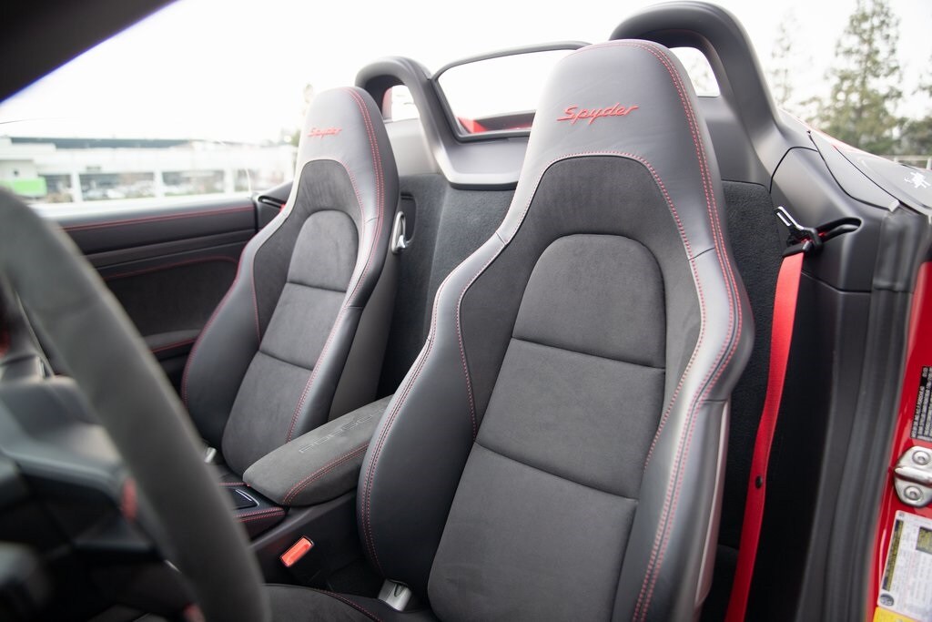 Certified. Guards Red 2023 Porsche 718 Spyder RWD 6-Speed Manual 4.0L H6 DOHC 24V LEV3-ULEV125 414hp *ONE OWNER CLEAN CARFAX*, *RARE FIND*, 18-Way Adaptive Sport Seats Plus, 2-Zone Automatic Climate Control, 4-Wheel Disc Brakes, ABS brakes, Adaptive suspension, Air Conditioning, AM/FM radio: SiriusXM, Apple CarPlay, Auto Dimming Mirrors w/Integrated Rain Sensor, BOSE Surround Sound System, Brake assist, Brake Calipers in High Gloss Black, Carbon Floor Mats w/Leather Edging in Black, Delay-off headlights, Door Handles in High Gloss Black, Door Trim Package in Leather/Race-Tex, Electronic Stability Control, Exterior Parking Camera Rear, Fire Extinguisher, Four wheel independent suspension, Fully automatic headlights, Garage door transmitter: HomeLink, Heated door mirrors, High intensity discharge headlights: Bi-Xenon, Interior Trim in Brushed Black Alum w/Leather Int, Light Design Package, Locking Wheel Bolts, Luggage Net in Passenger Footwell, Memory Package, Model Designation on Rear in High Gloss Black, Owner's Manual Wallet in Carbon Fiber, Porsche Ceramic Composite Brake, Power door mirrors, Power driver seat, Power Folding Exterior Mirrors, Power passenger seat, Power steering, Power windows, Preparation for Porsche Dashcam, Rear window defroster, Remote keyless entry, Seat Belts in Guards Red, Seat Heating, Speed control, Spoiler, Storage Compartment Lid in Race-Tex w/PORSCHE, Sun Visors in Race-Tex, Telescoping steering wheel, Tilt steering wheel, Variably intermittent wipers, Wheels: 20" 718 Spyder in Silver.