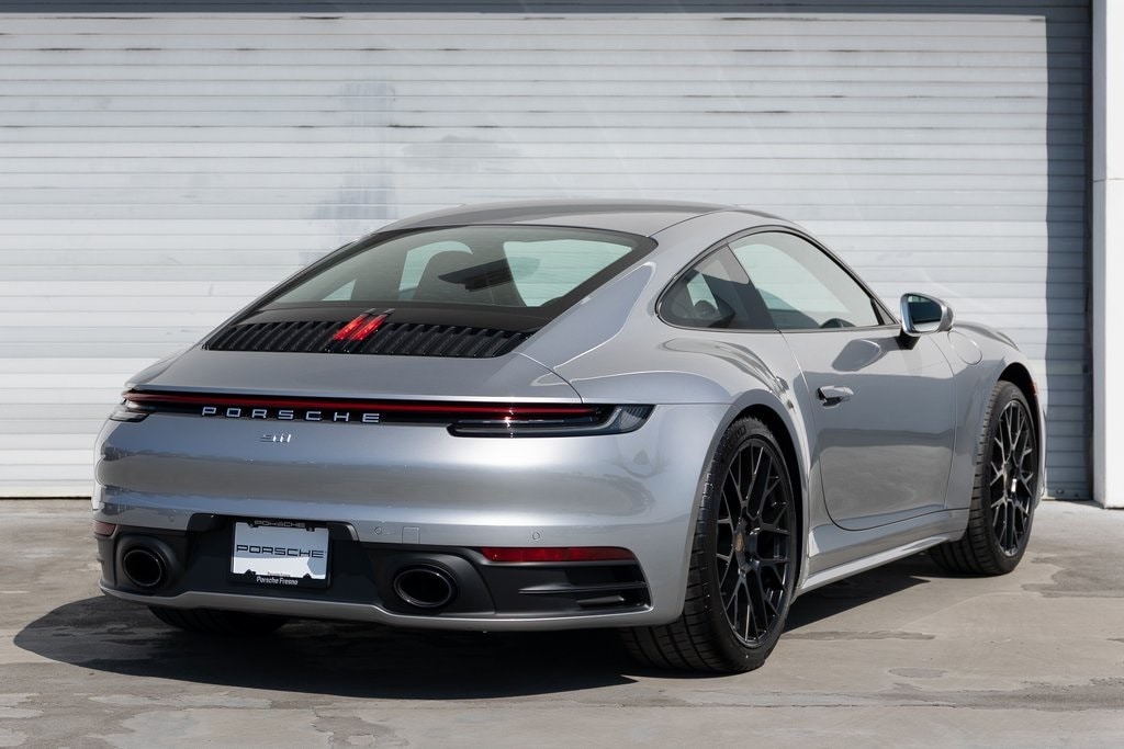Certified. GT Silver Metallic 2024 Porsche 911 Carrera S RWD 8-Speed Porsche Doppelkupplung (PDK) 3.0L H6 Turbocharged DOHC 24V LEV3-ULEV70 443hp Exterior Mirror Lower Trim in Exterior Color and Base in High Gloss Black, 14-Way Power Sport Seats w/Memory Package, 4-Wheel Disc Brakes, ABS brakes, Adaptive suspension, Air Conditioning, Ambient Lighting, Auto-dimming door mirrors, Automatic temperature control, BOSE Surround Sound System, Brake assist, Delay-off headlights, Electronic Stability Control, Exclusive Design Fuel Cap, Extended Range 23.7 Gallon Fuel Tank, Exterior Parking Camera Rear, Four wheel independent suspension, Front Axle Lift System, Front dual zone A/C, Front Ventilated Seats, Fully automatic headlights, Heated door mirrors, Heated GT Sport Steering Wheel, Ionizer, Lane Change Assist (LCA), LED-Matrix Design Headlights w/PDLS+, Navigation system: Porsche Communication Management (PCM), PASM Sport Suspension (Lowered 10mm), Porsche Communication Management, Porsche Dynamic Light System Plus (PDLS+), Porsche InnoDrive w/Adaptive Cruise Control, Power door mirrors, Power driver seat, Power Folding Exterior Mirrors, Power steering, Power Steering Plus, Power windows, Premium Package, Preparation for Front & Rear Porsche Dashcam, Rain sensing wipers, Rear Axle Steering, Rear fog lights, Rear window defroster, Remote keyless entry, Sound Package Plus, Sport Chrono Package, Sport Exhaust System w/Tailpipes in Silver, Sport Package, SportDesign Front Fascia, SportDesign Side Skirts, Steering wheel mounted audio controls, Storage Package, Surround View, Telescoping steering wheel, Tilt steering wheel, Under Door Puddle Light Projectors, Variably intermittent wipers, Wheels Painted in Satin Black, Wheels: 20" Front/21" Rear RS Spyder Design, Window Trim in High Gloss Black.