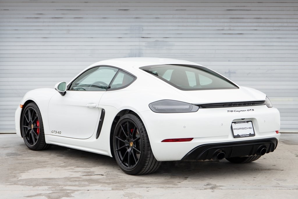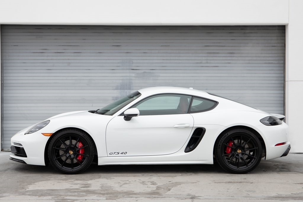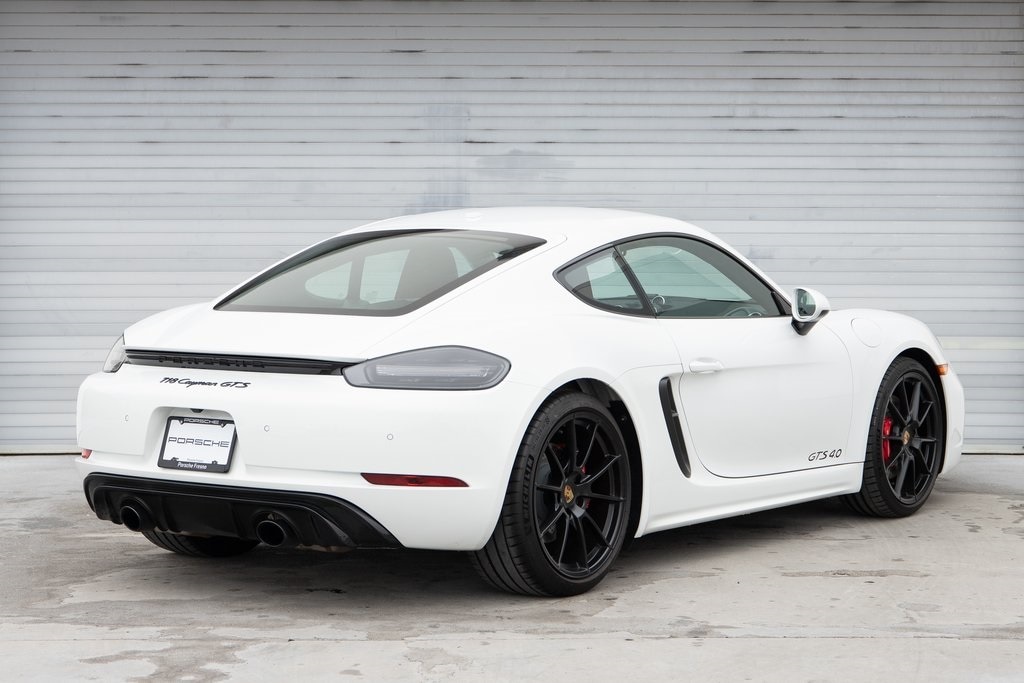 Certified. White 2025 Porsche 718 Cayman GTS RWD 7-Speed Porsche Doppelkupplung (PDK) 4.0L H6 DOHC 24V LEV3-LEV160 394hp 14-Way Power Sport Seats w/Memory Package, 4-Wheel Disc Brakes, 8 Speakers, ABS brakes, Air Conditioning, AM/FM radio: SiriusXM, Apple CarPlay, Auto-dimming door mirrors, Auto-dimming Rear-View mirror, Automatic temperature control, Brake assist, Burmester High-End Surround Sound System, Center Console Lid w/Porsche Crest, Delay-off headlights, Deletion of Race-Tex, Electric Steering Column, Electronic Stability Control, Exclusive Design Fuel Cap, Exterior Parking Camera Rear, Front dual zone A/C, Fully automatic headlights, Garage door transmitter: HomeLink, GTS Suspension Delete, Headlight cleaning, Heated door mirrors, Heated front seats, Heated Multifunction Sport Steering Whl in Carbon, High intensity discharge headlights: Bi-Xenon, Illuminated Door-Sill Guards in Carbon Fiber, Interior Trim in Carbon Fiber, Lane Change Assist (LCA), LED Headlights w/Porsche Dynamic Light System, Light Design Package, Luggage Net in Passenger Footwell, Navigation w/Porsche Connect, PDK Gear Selector w/Carbon Fiber Trim, Porsche Communication Management, Porsche Crest on Headrests, Porsche Entry & Drive, PORSCHE Logo on Rear in Satin Black, Power door mirrors, Power driver seat, Power Folding Exterior Mirrors w/Courtesy Lighting, Power passenger seat, Power steering, Power Steering Plus, Power windows, Premium Package, Preparation for Porsche Dash Cam (Front), Radio data system, Rain sensing wipers, Rear window defroster, Remote keyless entry, Seat Belts in Bordeaux Red, Seat Ventilation, Sound Package Plus w/8 Loudspeakers, SportDesign Package in High Gloss Black, Telescoping steering wheel, Tilt steering wheel, Variably intermittent wipers, Wheels: 20" 718 Sport in Satin Black, Window Trim & Window Triangle in High Gloss Black.