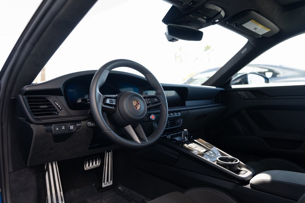 Certified. Lugano Blue 2025 Porsche 911 Carrera 4 GTS AWD 8-Speed Porsche Doppelkupplung (PDK) 3.6L H6 Hybrid Turbocharged DOHC 24V LEV3-ULEV70 Heated GT Sport Steering Wheel in Leather with Trim in Matte Carbon Fiber, 18-Way Adaptive Sport Seats Plus w/Memory Package, 4-Wheel Disc Brakes, Adaptive Cruise Control, Adaptive suspension, Air Conditioning, Aluminum Pedals & Footrest, Auto High-beam Headlights, Auto-dimming Rear-View mirror, Automatic temperature control, BOSE Surround Sound System, Brake assist, Delay-off headlights, Digital Tachometer in Slate Grey Neo, Electric Slide/Tilt Glass Sunroof, Electronic Stability Control, Emergency communication system, Exclusive Design Fuel Cap, Exclusive Design Taillights, Exterior Package in High Gloss Black, Exterior Parking Camera Rear, Four wheel independent suspension, Front Axle Lift System, Front dual zone A/C, Fully automatic headlights, Garage door transmitter: HomeLink, HD-Matrix Design LED Headlights in Black, Heated door mirrors, Illuminated Door Sill Guards in Black Brushed Alum, Ionizer, Navigation system: Porsche Communication Management (PCM), Night Vision Assist, PDK Gear Selector in Aluminum, Porsche Ceramic Composite Brakes (PCCB) (1LX), Porsche Communication Management, Power door mirrors, Power driver seat, Power steering, Power windows, Premium Package w/Remote ParkAssist, Preparation for Front & Rear Porsche Dashcam, Rain sensing wipers, Rear fog lights, Rear window defroster, Remote keyless entry, Remote ParkAssist, Sound Package Plus, Steering wheel mounted audio controls, Storage Net in Passenger Footwell, Telescoping steering wheel, Tilt steering wheel, Under Door Puddle Light Projectors, Variably intermittent wipers, Wheels Painted in High Gloss Black, Wheels: 20" Front/21" Rear Carrera S.