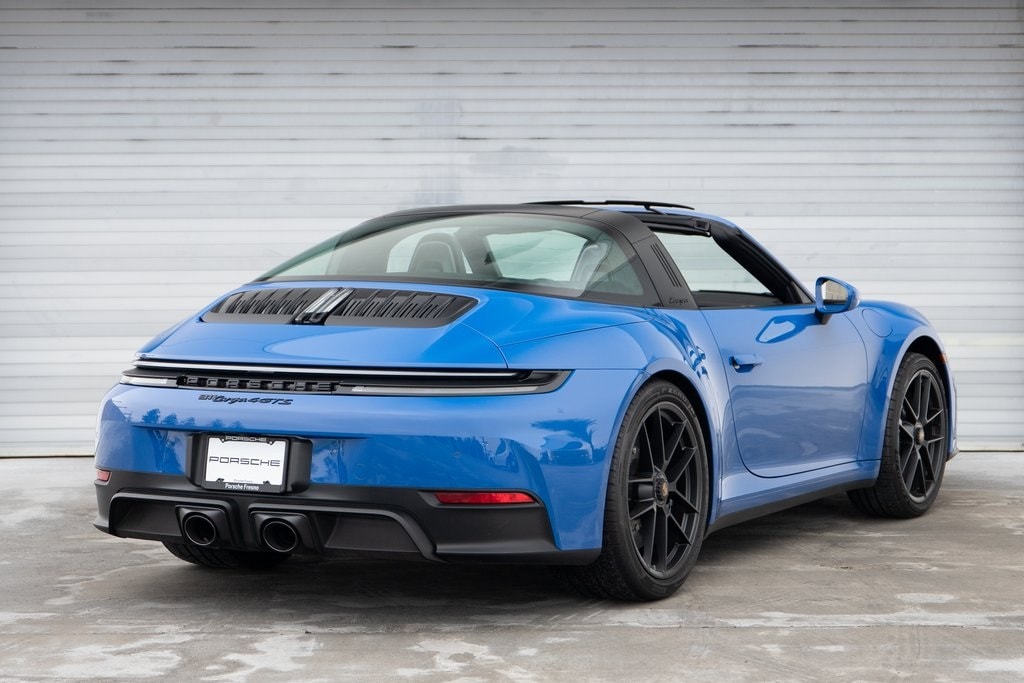 Certified. Lugano Blue 2025 Porsche 911 Targa 4 GTS AWD 8-Speed Porsche Doppelkupplung (PDK) 3.6L H6 Turbocharged DOHC 24V LEV3-ULEV70 18-Way Adaptive Sport Seats Plus w/Memory Package, ABS brakes, Adaptive suspension, Air Conditioning, Auto High-beam Headlights, Auto-dimming Rear-View mirror, Automatic temperature control, Brake assist, Burmester High-End Surround Sound System, Delay-off headlights, Digital Tachometer in Carmine Red, Electronic Stability Control, Emergency communication system, Exclusive Design Fuel Cap, Exterior Parking Camera Rear, Four wheel independent suspension, Front Axle Lift System, Front dual zone A/C, Fully automatic headlights, Garage door transmitter: HomeLink, Heated door mirrors, Heated front seats, Lane Change Assist (LCA), Navigation system: Porsche Communication Management (PCM), Porsche Ceramic Composite Brakes (PCCB) (1LX), Porsche Communication Management, Power door mirrors, Power driver seat, Power steering, Power windows, Rain sensing wipers, Rear fog lights, Rear window defroster, Remote keyless entry, Seat Belts in Guards Red, Sound Package Plus, Steering wheel mounted audio controls, Telescoping steering wheel, Tilt steering wheel, Variably intermittent wipers, Wheels Painted in Satin Black, Wheels: 20" Front/21" Rear Carrera GTS.