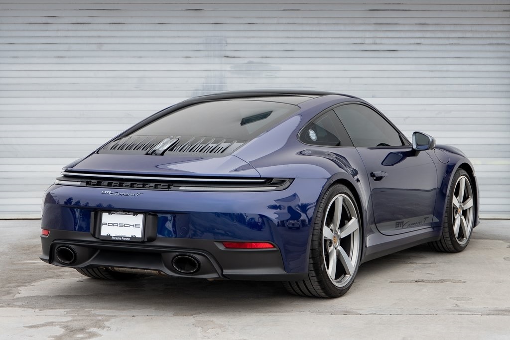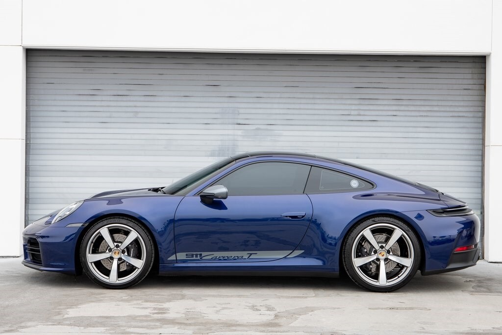 Certified. Gentian Blue Metallic 2025 Porsche 911 Carrera T RWD 6-Speed Manual 3.0L H6 Turbocharged DOHC 24V LEV3-ULEV70 388hp *ONE OWNER CLEAN CARFAX*, Seat Belts in Gentian Blue, 18-Way Adaptive Sport Seats Plus w/Memory Package, 4-Wheel Disc Brakes, 8 Speakers, 911 Carrera T Puddle Light Projectors, 911 Carrera T Side Logos in Vanadium Grey, ABS brakes, Adaptive suspension, Air Conditioning, Auto-dimming door mirrors, Auto-dimming Rear-View mirror, Automatic temperature control, BOSE Surround Sound System, Brake assist, Delay-off headlights, Dual front impact airbags, Dual front side impact airbags, Electric Slide/Tilt Glass Sunroof, Electronic Stability Control, Emergency communication system, Engine Compartment Cover in Titanium Grey, Exclusive Design Fuel Cap, Exclusive Design Taillights, Extended Range 22.1 Gallon Fuel Tank, Exterior Parking Camera Rear, Four wheel independent suspension, Front anti-roll bar, Front Axle Lift System, Front dual zone A/C, Fully automatic headlights, Garage door transmitter: HomeLink, HD-Matrix Design LED Headlights, Heated door mirrors, Heated front seats, Heated steering wheel, Illuminated Door Sill Guards in Black Brushed Alum, Ionizer, Lane Change Assist (LCA), Low tire pressure warning, Navigation system: Porsche Communication Management (PCM), Occupant sensing airbag, Overhead airbag, Porsche Communication Management, Power door mirrors, Power driver seat, Power steering, Power Steering Plus, Power windows, Rain sensing wipers, Rear anti-roll bar, Rear fog lights, Rear Seats Delete, Rear window defroster, Remote keyless entry, Sound Package Plus, Spoiler, SportDesign Front Fascia, Steering Column Casing in Lthr i.c.w. Memory Pkg, Steering wheel mounted audio controls, Storage Net in Passenger Footwell, Surround View, Telescoping steering wheel, Tilt steering wheel, Variably intermittent wipers, Wheels: 20" Front/21" Rear Carrera S.
