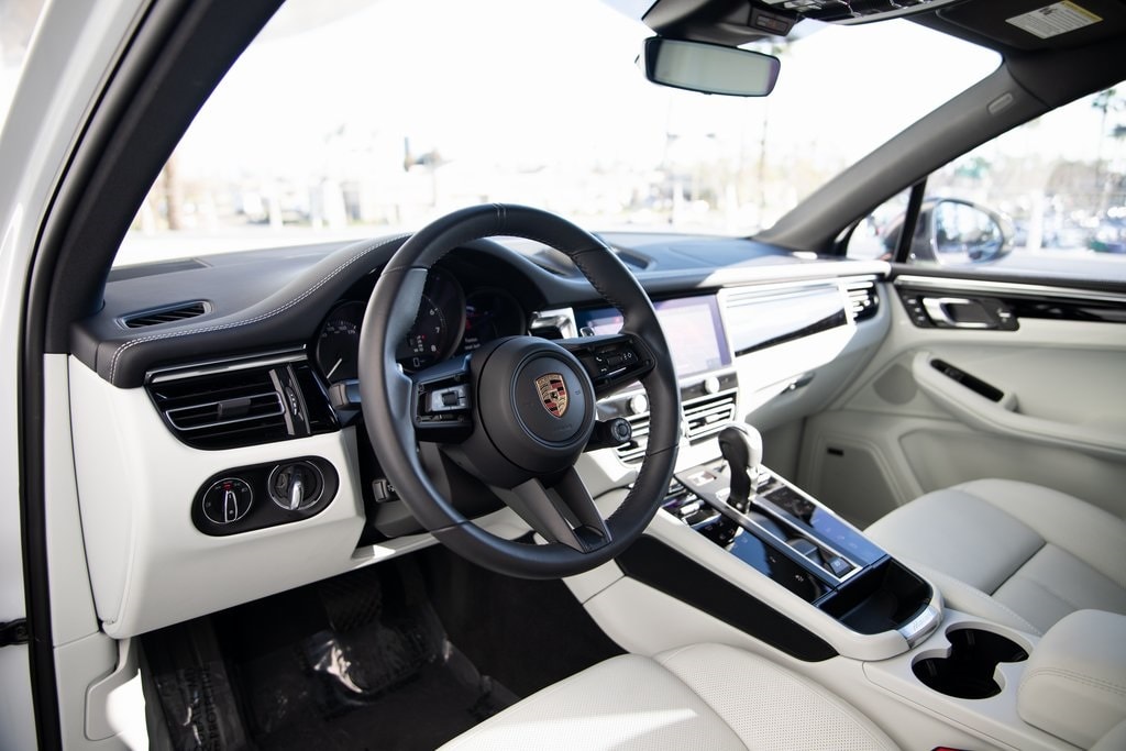 Certified. Carrara White Metallic 2025 Porsche Macan T AWD 7-Speed Porsche Doppelkupplung (PDK) 2.0L I4 Turbocharged 14-Way Power Seats w/Memory Package, 4-Wheel Disc Brakes, Air Conditioning, AM/FM radio: SiriusXM, Apple CarPlay, Auto-dimming door mirrors, Auto-dimming Rear-View mirror, Automatic temperature control, Black LED Headlights w/Dynamic Light System Plus, BOSE Surround Sound System, Brake assist, Clear LED Taillights, Delay-off headlights, Electronic Stability Control, Emergency communication system, Exterior Package in Exterior Color, Exterior Parking Camera Rear, Front & Rear Thermally & Noise Insulated Glass, Front dual zone A/C, Front Fascia Painted in Exterior Color, Front Ventilated Seats, Fully automatic headlights, Garage door transmitter: HomeLink, Heated door mirrors, Heated steering wheel, Lane Change Assist (LCA), LED Headlights w/Porsche Dynamic Light System Plus, Memory seat, Navigation System, Painted Lower Rear Fascia in Exterior Color, Panoramic Roof System, Porsche Communication Management, Power door mirrors, Power driver seat, Power Liftgate, Power passenger seat, Power steering, Power windows, Premium Package Plus, Rain sensing wipers, Rear air conditioning, Rear Heated Seats, Rear window defroster, Rear window wiper, Roof Rails in High Gloss Black, Side Blades in Exterior Color, SportDesign Side Skirts, Steering wheel mounted audio controls, Surround View, Telescoping steering wheel, Tilt steering wheel, Turn signal indicator mirrors, Variably intermittent wipers, Wheels: 21" Exclusive Design Sport in Platinum Silver.