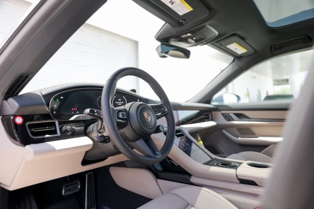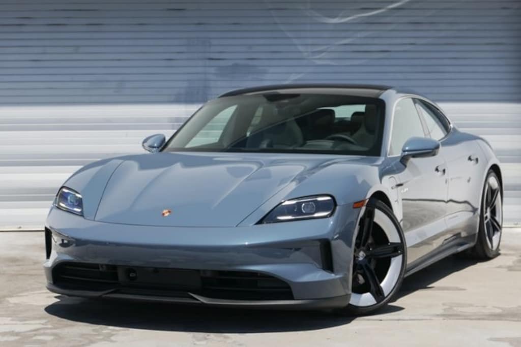 Pale Blue Metallic 2025 Porsche Taycan 4 AWD 2-Speed Automatic Electric Motor 1 Year of 30 Minute DC Charging Sessions, 10 Speakers, 14-Way Comfort Seats w/Comfort Memory, 4-Wheel Disc Brakes, ABS brakes, Adaptive Cruise Control, Advanced 4-Zone Climate Control, Air Conditioning, Air Quality System, Apple CarPlay & Android Auto, Auto High-beam Headlights, Auto-dimming door mirrors, Auto-dimming Rear-View mirror, Auto-leveling suspension, Automatic temperature control, BOSE Surround Sound System, Brake assist, Brake Calipers in High Gloss Black, Compass, Delay-off headlights, Electronic Stability Control, Emergency communication system: Emergency Call Systems - eCall and bCall, Exterior Mirrors in Exterior Color, Exterior Parking Camera Rear, Fixed Panoramic Roof in Glass, Four wheel independent suspension, Front dual zone A/C, Front Seat Ventilation, Fully automatic headlights, Garage door transmitter: HomeLink, Head-Up Display, Heated door mirrors, Heated front seats, Heated steering wheel, Illuminated entry, Low tire pressure warning, Navigation system: Porsche Communication Management (PCM), Performance Battery Plus, Porsche Communication Management, Premium Package, Rain sensing wipers, Rear 2+1 Seats, Rear fog lights, Rear window defroster, Remote keyless entry, Soft Close Doors, Sport Chrono Package, SportDesign Side Skirts, Storage Package, Surround View w/Active Parking Support, Telescoping steering wheel, Tilt steering wheel, Traction control, Under Door Puddle Light Projectors, Variably intermittent wipers, Wheels: 21" Mission E Design, Window Trim in Silver.
