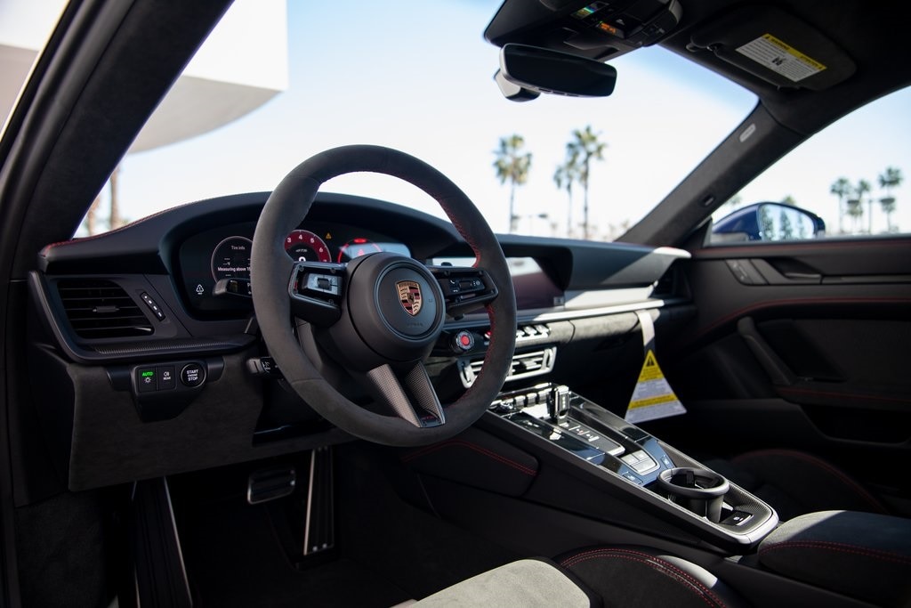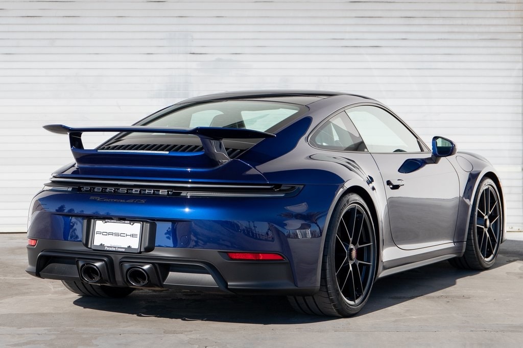 Gentian Blue Metallic 2026 Porsche 911 Carrera GTS RWD 8-Speed Porsche Doppelkupplung (PDK) 3.6L H6 Hybrid Turbocharged DOHC 24V LEV3-ULEV70, 18-Way Adaptive Sport Seats Plus with Memory Package, 4-Wheel Disc Brakes, ABS brakes, Adaptive suspension, Aerokit, Air Conditioning, Auto High-beam Headlights, Auto-dimming door mirrors, Automatic temperature control, BOSE Surround Sound System, Brake assist, Delay-off headlights, Digital Tachometer in Carmine Red, Electric Slide/Tilt Glass Sunroof, Emergency communication system, Exclusive Design Fuel Cap, Extended Range 22.1 Gallon Fuel Tank, Four wheel independent suspension, Front Axle Lift System, Front dual zone A/C, Fully automatic headlights, Garage door transmitter: HomeLink, HD-Matrix Design LED Headlights in Black, Heated front seats, Illuminated Door Sill Guards in Black Brushed Aluminum, Lane Change Assist (LCA), Navigation system: Porsche Communication Management (PCM), Porsche Communication Management, Power driver seat, Power steering, Power windows, Rain sensing wipers, Rear fog lights, Rear Seats Delete, Rear window defroster, Remote keyless entry, Seat Belt Outlet Trims in Race-Tex, Sound Package Plus, Steering wheel mounted audio controls, Sun Visors in Race-Tex, Telescoping steering wheel, Tilt steering wheel, Variably intermittent wipers, Wheels Painted in Satin Black, Wheels: 20" Front/21" Rear Carrera GTS.