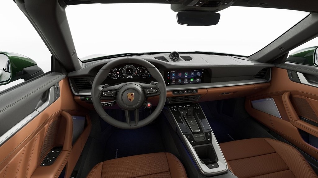 Oak Green Metallic Neo 2026 Porsche 911 Targa 4S AWD 8-Speed Porsche Doppelkupplung (PDK) 3.0L H6 Turbocharged DOHC 24V LEV3-ULEV70 473hp 18-Way Adaptive Sport Seats Plus w/Memory Package, 4-Wheel Disc Brakes, 911 Logo on Rear in High Gloss Black, ABS brakes, Adaptive Cruise Control (ACC), Adaptive suspension, Air Conditioning, Auto-dimming door mirrors, Auto-dimming Rear-View mirror, Automatic temperature control, BOSE Surround Sound System, Brake assist, Brake Calipers in High Gloss Black, Burmester High-End Surround Sound System, Delay-off headlights, Electronic Stability Control, Exclusive Design Taillights, Exclusive Manufaktur Leather Interior, Exclusive Manufaktur Lthr Seat Trim w/Two-Tone Int, Exterior Parking Camera Rear, Four wheel independent suspension, Front dual zone A/C, Front Ventilated Seats, Fully automatic headlights, Garage door transmitter: HomeLink, Glass rear window, Heated door mirrors, Heated front seats, Heated GT Sport Steering Wheel in Leather (2PJ), Heated steering wheel, Illuminated Door-Sill Guards in Matte Carbon Fiber, Ionizer, Lane Change Assist (LCA), Leather steering wheel, Navigation system: Porsche Communication Management (PCM), Passenger Cupholder Trim in Leather, Porsche Communication Management, Power door mirrors, Power driver seat, Power steering, Power windows, Premium Package, Rain sensing wipers, Rear fog lights, Rear Model Designation in High Gloss Black, Rear window defroster, Remote keyless entry, Seat Belts in Silver Grey, Sound Package Plus, Sport Chrono Package, Steering wheel mounted audio controls, Storage Net in Passenger Footwell, Sun Visors in Leather, Surround View w/Active Parking Support, Targa Bar in Black, Telescoping steering wheel, Tilt steering wheel, Variably intermittent wipers, Wheels Painted in High Gloss Black (1NZ), Wheels: 20" Front/21" Rear Carrera S.