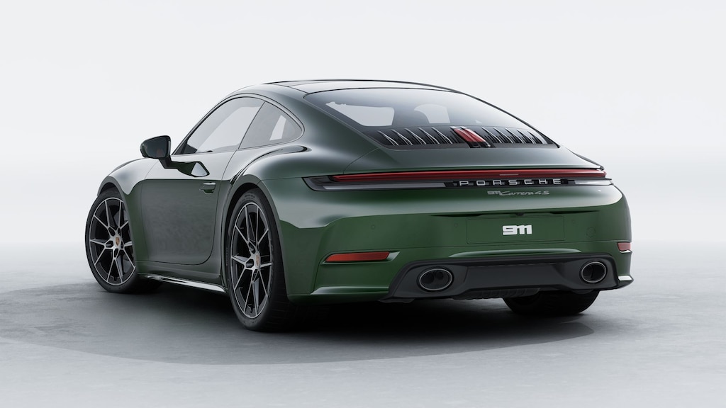 Oak Green Metallic Neo 2026 Porsche 911 Carrera 4S AWD 8-Speed Porsche Doppelkupplung (PDK) 3.0L H6 Turbocharged DOHC 24V LEV3-ULEV70 473hp Wheels Painted in High Gloss Black with Highly Polished Surfaces, Interior Trim Inlays in Leather with Trim in Light Silver, Deviated Stitching Color Selection - GT Silver, AWD, 18-Way Adaptive Sport Seats Plus with Memory Package, 4-Wheel Disc Brakes, 930 Leather Package, ABS brakes, Adaptive Cruise Control (ACC), Adaptive suspension, Air Conditioning, Auto-dimming door mirrors, Auto-dimming Rear-View mirror, Automatic temperature control, BOSE Surround Sound System, Brake assist, Brake Calipers in High Gloss Black, Delay-off headlights, Deviated Stitching Interior Package, Electric Slide/Tilt Glass Sunroof, Electronic Stability Control, Emergency communication system, Exterior Parking Camera Rear, Front dual zone A/C, Front Ventilated Seats, Fully automatic headlights, Garage door transmitter: HomeLink, HD-Matrix Design LED Headlights, Heated door mirrors, Heated GT Sport Steering Wheel in Leather, Illuminated Bespoke Brushed Aluminum Door Sill Guards, Ionizer, Lane Change Assist (LCA), Navigation system: Porsche Communication Management (PCM), Porsche Communication Management, Porsche Crest on Front Headrests, Power door mirrors, Power driver seat, Power steering, Power windows, Premium Package with Remote ParkAssist, Rain sensing wipers, Rear fog lights, Rear Seats Delete, Rear window defroster, Remote keyless entry, Remote ParkAssist, Roof Lining in Race-Tex, Seat Belt Outlet Trims in Race-Tex, Seat Belts in Silver Grey, Sound Package Plus, Sport Chrono Package, SportDesign Package, Steering wheel mounted audio controls, Storage Net in Passenger Footwell, Telescoping steering wheel, Tilt steering wheel, Variably intermittent wipers, Wheels: 20" Front/21" Rear Carrera S, Window Trim in Silver.