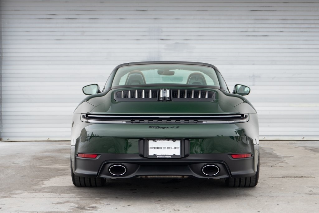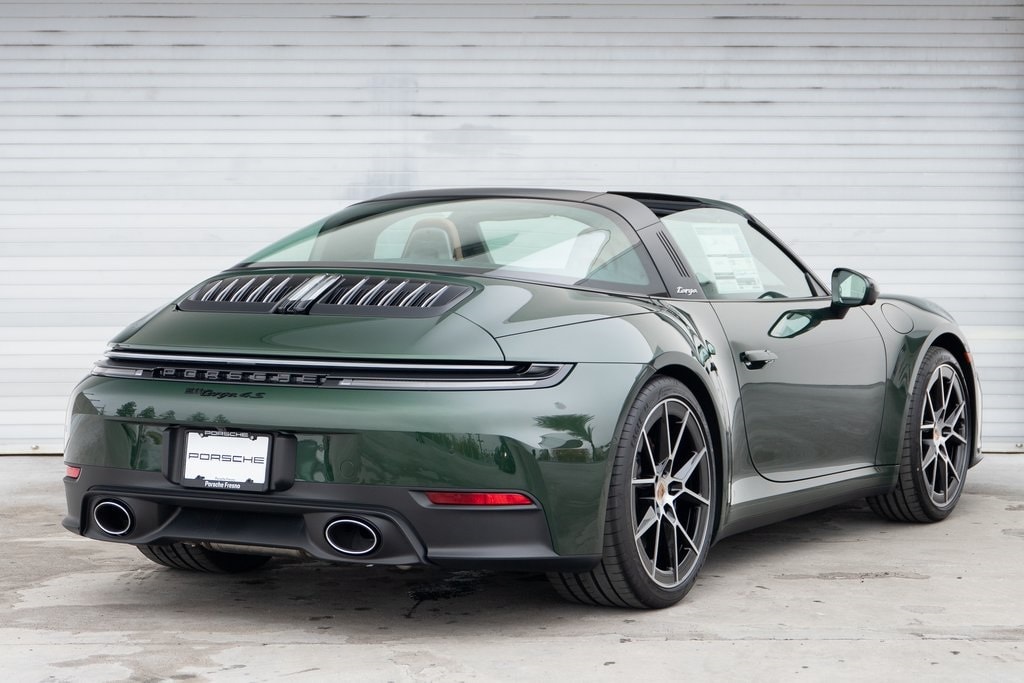 Oak Green Metallic Neo 2026 Porsche 911 Targa 4S AWD 8-Speed Porsche Doppelkupplung (PDK) 3.0L H6 Turbocharged DOHC 24V LEV3-ULEV70 473hp 18-Way Adaptive Sport Seats Plus w/Memory Package, 4-Wheel Disc Brakes, 911 Logo on Rear in High Gloss Black, ABS brakes, Adaptive Cruise Control (ACC), Adaptive suspension, Air Conditioning, Auto-dimming door mirrors, Auto-dimming Rear-View mirror, Automatic temperature control, BOSE Surround Sound System, Brake assist, Brake Calipers in High Gloss Black, Burmester High-End Surround Sound System, Delay-off headlights, Electronic Stability Control, Exclusive Design Taillights, Exclusive Manufaktur Leather Interior, Exclusive Manufaktur Lthr Seat Trim w/Two-Tone Int, Exterior Parking Camera Rear, Four wheel independent suspension, Front dual zone A/C, Front Ventilated Seats, Fully automatic headlights, Garage door transmitter: HomeLink, Glass rear window, Heated door mirrors, Heated front seats, Heated GT Sport Steering Wheel in Leather (2PJ), Heated steering wheel, Illuminated Door-Sill Guards in Matte Carbon Fiber, Ionizer, Lane Change Assist (LCA), Leather steering wheel, Navigation system: Porsche Communication Management (PCM), Passenger Cupholder Trim in Leather, Porsche Communication Management, Power door mirrors, Power driver seat, Power steering, Power windows, Premium Package, Rain sensing wipers, Rear fog lights, Rear Model Designation in High Gloss Black, Rear window defroster, Remote keyless entry, Seat Belts in Silver Grey, Sound Package Plus, Sport Chrono Package, Steering wheel mounted audio controls, Storage Net in Passenger Footwell, Sun Visors in Leather, Surround View w/Active Parking Support, Targa Bar in Black, Telescoping steering wheel, Tilt steering wheel, Variably intermittent wipers, Wheels Painted in High Gloss Black (1NZ), Wheels: 20" Front/21" Rear Carrera S.