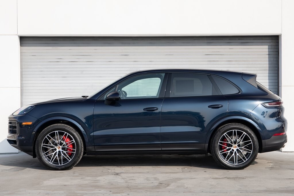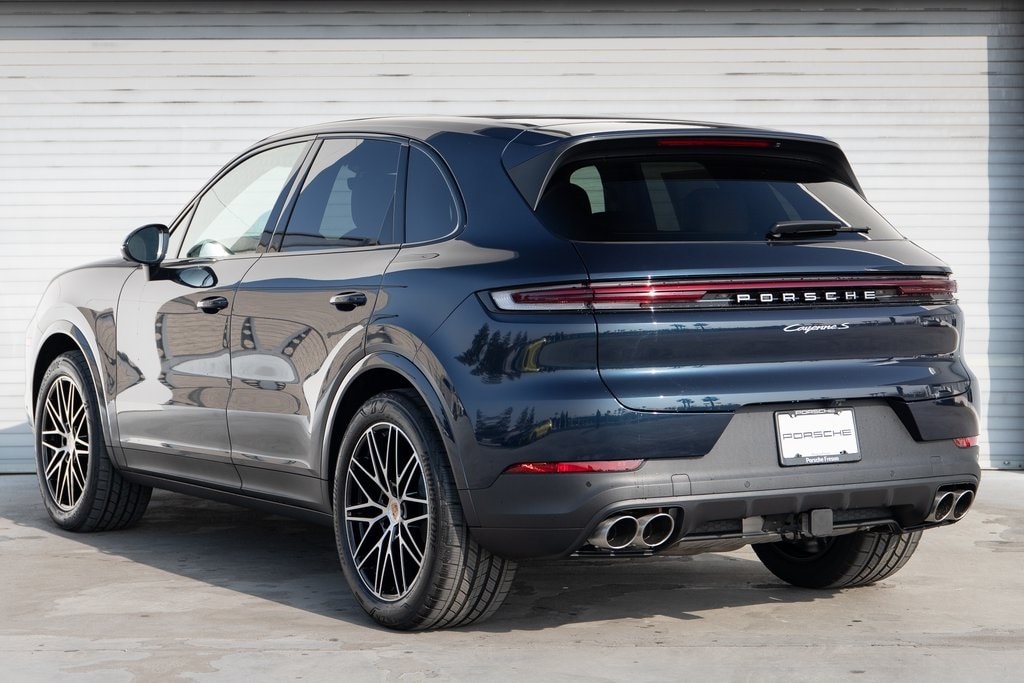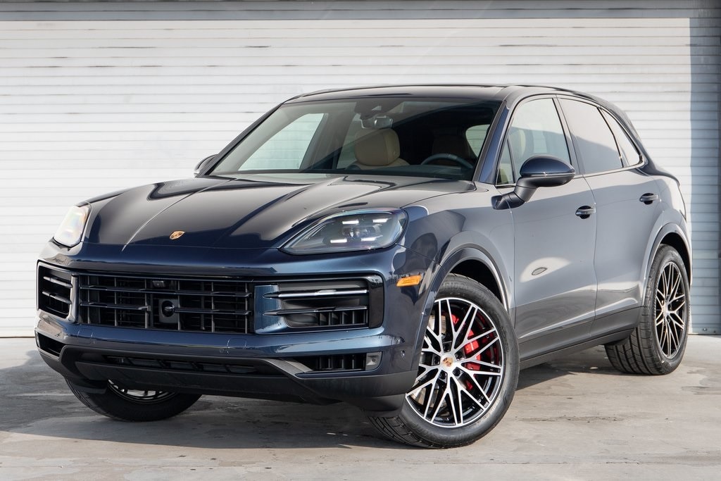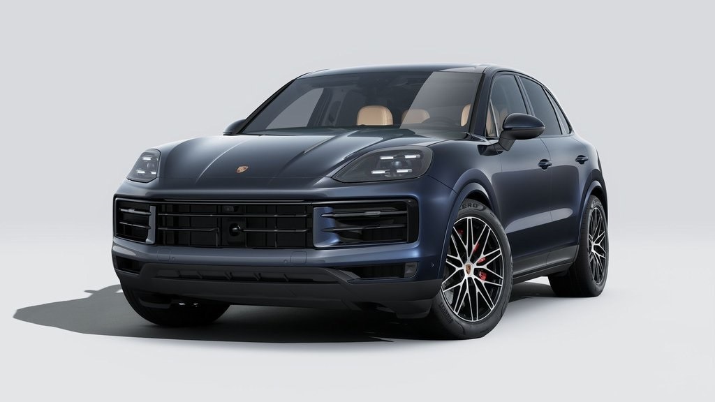 Algarve Blue Metallic 2026 Porsche Cayenne S AWD 8-Speed Automatic with Tiptronic V8 Black/Mojave Beige w/Leather Seat Trim with Two-Tone Leather Interior, 14-Way Power Seats with Comfort Memory, 4-Wheel Disc Brakes, ABS brakes, Adaptive Cruise Control with Lane Keep Assist (LKA), Adaptive suspension, Air Conditioning, AM/FM radio: SiriusXM w/360L, Apple CarPlay & Android Auto, Auto-dimming door mirrors, Auto-dimming Rear-View mirror, Automatic temperature control, BOSE Surround Sound System, Brake assist, Delay-off headlights, Electronic Stability Control, Exterior Parking Camera Rear, Front dual zone A/C, Front Ventilated Seats, Fully automatic headlights, Garage door transmitter: HomeLink, Heated door mirrors, Heated front seats, HVAC memory, Memory seat, Navigation System, Panoramic Roof System, Porsche Communication Management, Power door mirrors, Power driver seat, Power Liftgate, Power steering, Power windows, Premium Package, Rain sensing wipers, Rear fog lights, Rear Heated Seats, Rear window defroster, Rear window wiper, Remote keyless entry, Sport Chrono Package, Steering wheel mounted audio controls, Telescoping steering wheel, Tilt steering wheel, Trailer Hitch Without Tow Ball, Turn signal indicator mirrors, Variably intermittent wipers, Wheels: 21" RS Spyder Design, Window Trim in High Gloss Black.