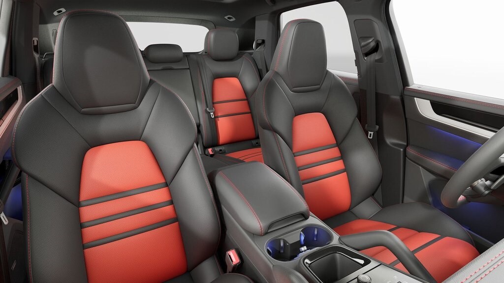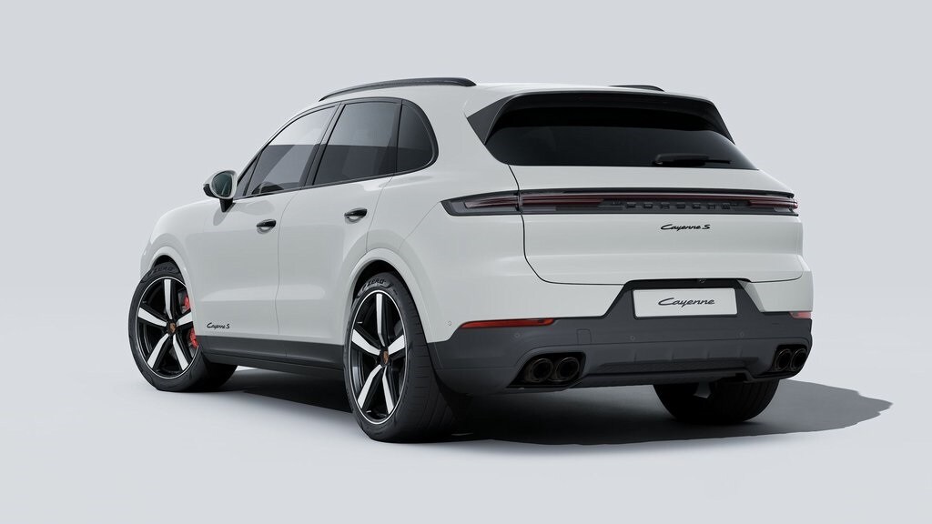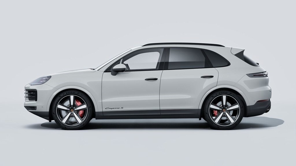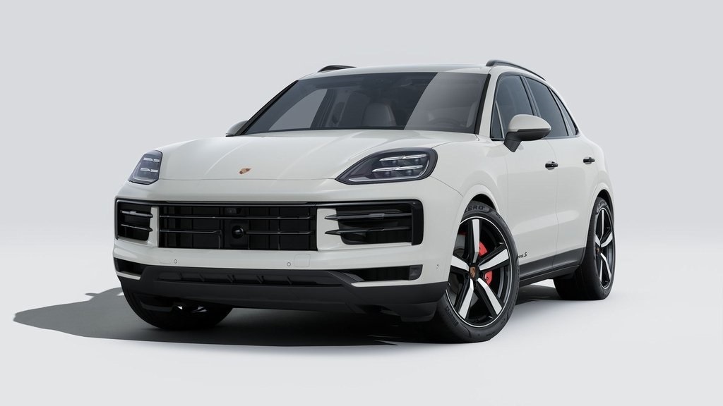 Chalk 2026 Porsche Cayenne S AWD 8-Speed Automatic with Tiptronic V8 Black w/Leather Seat Trim with Leather Interior, 18-Way Adaptive Sport Seats Plus with Comfort Memory, 4-Wheel Disc Brakes, 4-Zone Climate Control, ABS brakes, Adaptive Cruise Control with Lane Keep Assist (LKA), Adaptive suspension, Air Conditioning, AM/FM radio: SiriusXM w/360L, Apple CarPlay & Android Auto, Auto-dimming door mirrors, Auto-dimming Rear-View mirror, Automatic temperature control, BOSE Surround Sound System, Brake assist, Delay-off headlights, Deviated Stitching Interior Package and Deviated Leather Seat Centers in Guards Red, Door Handles in High Gloss Black, Electronic Stability Control, Exterior Parking Camera Rear, Front dual zone A/C, Front Ventilated Seats, Fully automatic headlights, Garage door transmitter: HomeLink, HD-Matrix Design LED Headlights, Heated door mirrors, Heated steering wheel, HVAC memory, Model Designation on Doors in Black, Navigation System, Panoramic Roof System, Porsche Communication Management, Porsche InnoDrive with Adaptive Cruise Control (ACC) and Active Lane Keep (ALK), Porsche Logo in High Gloss Black with Model Designation Delete, Power door mirrors, Power driver seat, Power Liftgate, Power steering, Power windows, Premium Package Plus, Rain sensing wipers, Rear fog lights, Rear Heated Seats, Rear window defroster, Rear window wiper, Remote keyless entry, Roof Rails in Black Aluminum Finish, Sport Chrono Package, Sport Exhaust System with Tailpipes in Dark Bronze, Steering wheel mounted audio controls, Telescoping steering wheel, Tilt steering wheel, Turn signal indicator mirrors, Under Door Puddle Light Projectors, Variably intermittent wipers, Wheels: 22" Exclusive Design Sport in Chromite Black Metallic, Window Trim in High Gloss Black.