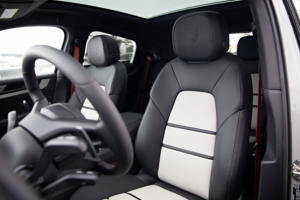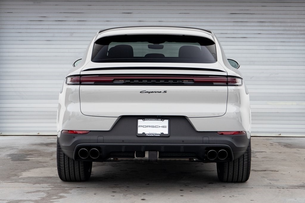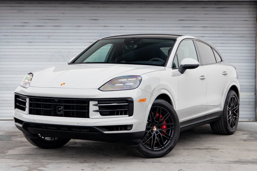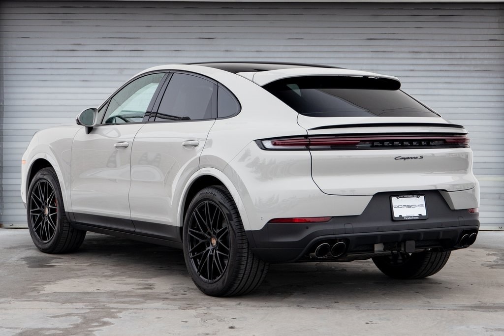 Chalk 2026 Porsche Cayenne Coupe S AWD 8-Speed Automatic with Tiptronic V8 14-Way Power Seats with Comfort Memory, 4-Wheel Disc Brakes, 4-Zone Climate Control, ABS brakes, Adaptive Cruise Control with Lane Keep Assist (LKA), Adaptive suspension, Air Conditioning, Air Quality System, AM/FM radio: SiriusXM w/360L, Apple CarPlay & Android Auto, Auto-dimming door mirrors, Auto-dimming Rear-View mirror, Automatic temperature control, BOSE Surround Sound System, Brake assist, Delay-off headlights, Deviated Leather Seat Centers, Electronic Stability Control, Exterior Parking Camera Rear, Four wheel independent suspension, Front dual zone A/C, Front Massage Seat Function with Front Ventilated Seats, Front Ventilated Seats, Fully automatic headlights, Garage door transmitter: HomeLink, HD-Matrix Design LED Headlights in Black, Heated door mirrors, Heated front seats, Heated steering wheel, HVAC memory, Memory seat, Navigation System, Porsche Communication Management, Porsche Crest on Front and Rear Headrests, Porsche InnoDrive with Adaptive Cruise Control (ACC) and Active Lane Keep (ALK), Porsche Logo and Model Designation on Rear in Black, Power door mirrors, Power driver seat, Power Liftgate, Power steering, Power Sunblind For Rear Side Windows, Power windows, Premium Package Plus, Rain sensing wipers, Rear Comfort Seats (2+1), Rear fog lights, Rear Heated Seats, Rear window defroster, Seat Belts in Bordeaux Red, Sport Exhaust System with Tailpipes in Dark Bronze, Steering wheel mounted audio controls, Telescoping steering wheel, Tilt steering wheel, Trailer Hitch Without Tow Ball, Turn signal indicator mirrors, Variably intermittent wipers, Wheels: 21" RS Spyder Design in High Gloss Black.