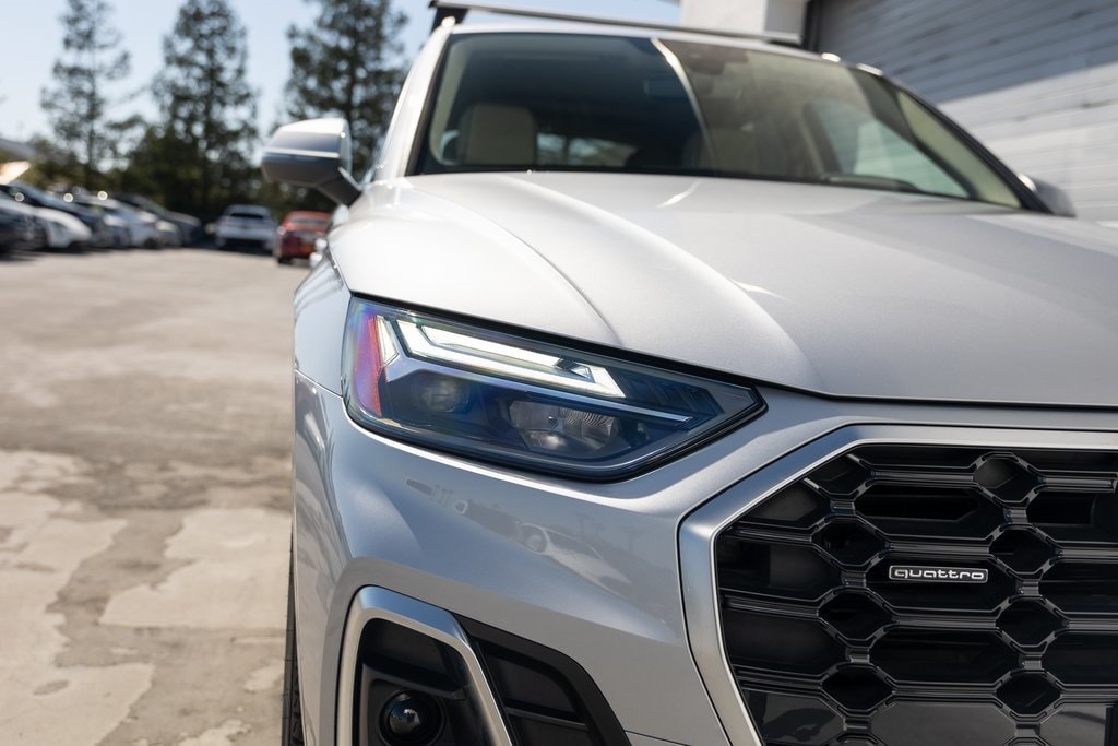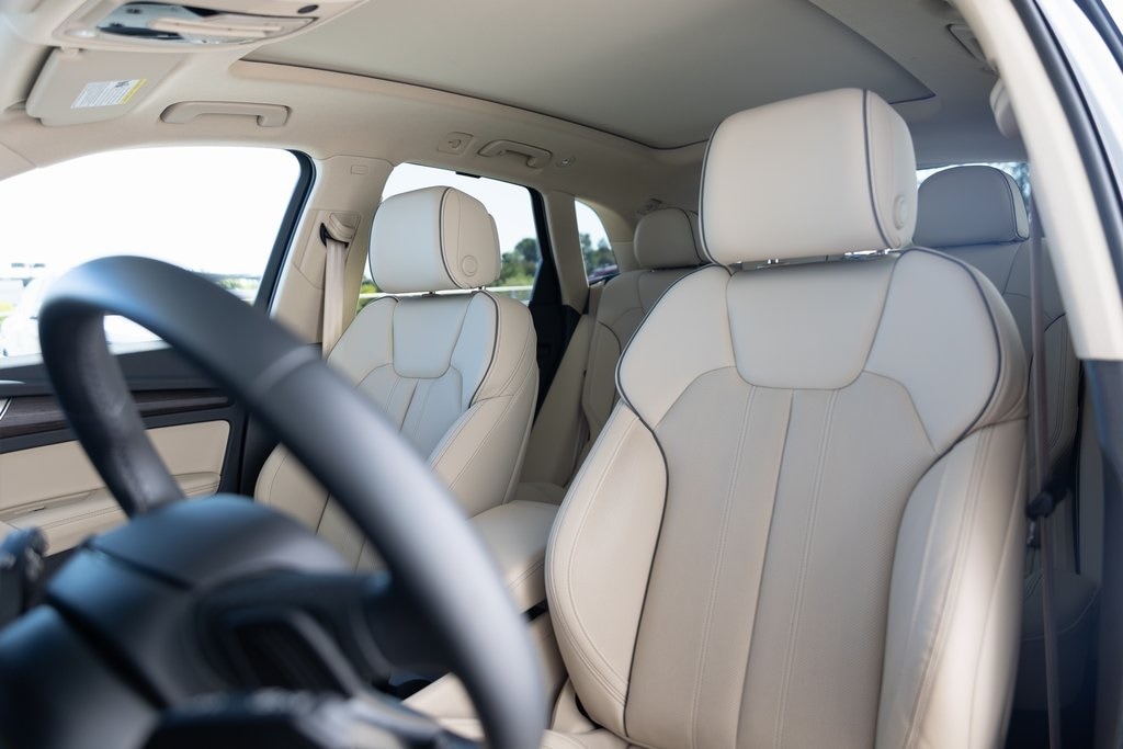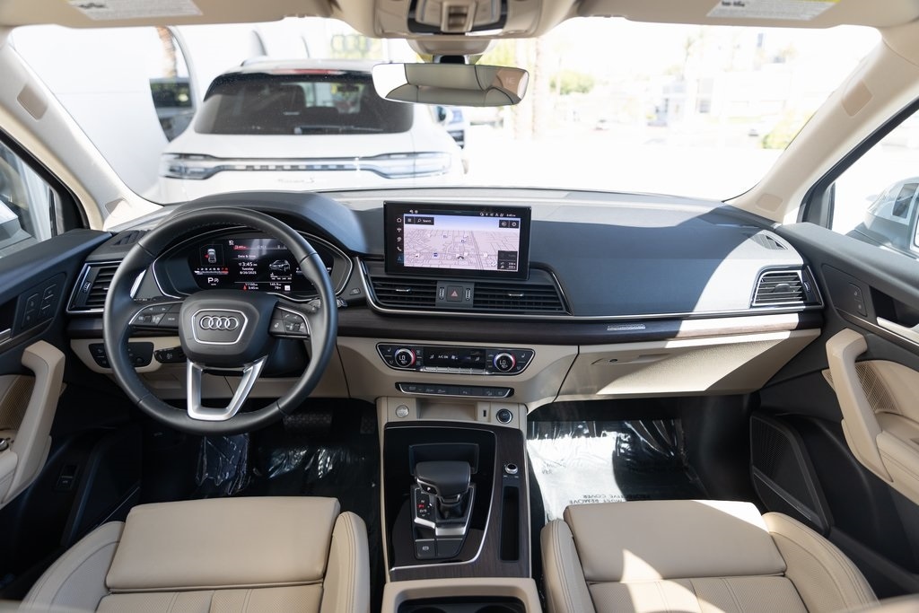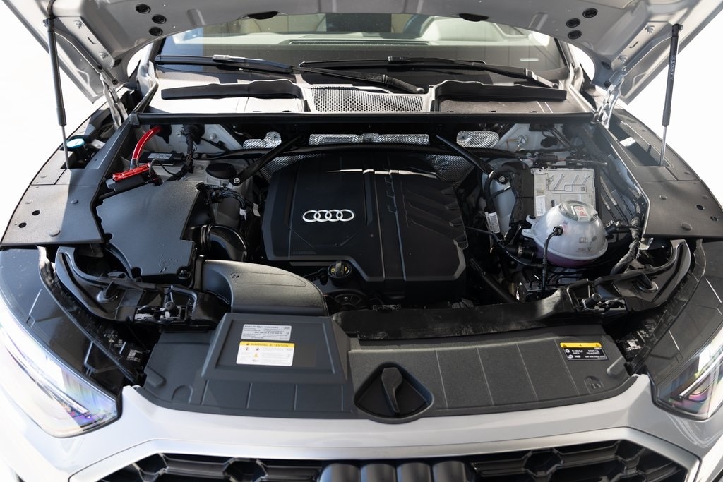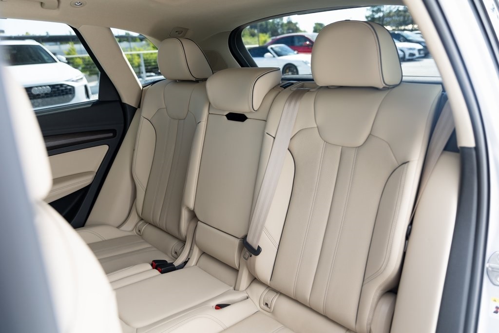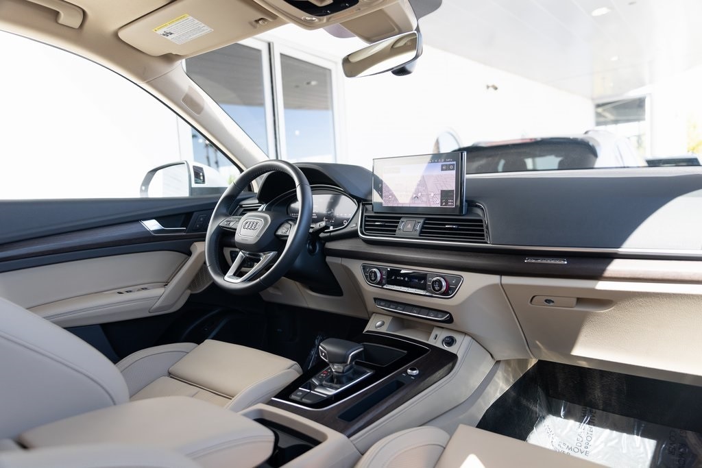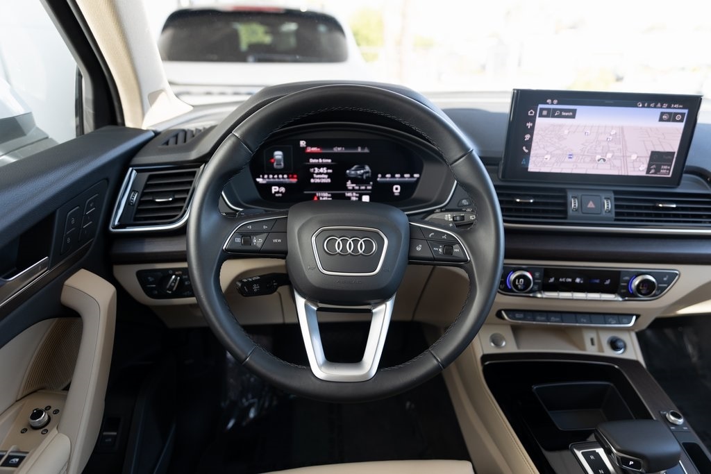 Florett Silver Metallic 2025 Audi Q5 45 S line Premium Plus quattro 7-Speed Automatic S tronic 2.0L Turbocharged *LOCAL TRADE*, *ONE OWNER CLEAN CARFAX*, Atlas Beige w/Leather Seating Surfaces, 10 Speakers, 4-Wheel Disc Brakes, ABS brakes, Air Conditioning, AM/FM Stereo, Audi Beam-Rings, Audi Virtual Cockpit Plus, Auto High-beam Headlights, Auto-dimming Rear-View mirror, Automatic temperature control, Bang & Olufsen 3D Sound System, Brake assist, Delay-off headlights, Driver Seat Memory, Electronic Stability Control, Emergency communication system: Audi connect CARE, Exterior Parking Camera Rear, Front dual zone A/C, Front fog lights, Garage door transmitter: HomeLink, Illuminated Front Audi Rings (DISC), Leatherette Covered Center Console & Door Armrests, LED Interior Lighting Plus Package, Manual Rear Side Window Shades, Panoramic Sunroof, Power Adjustable Steering Column, Power door mirrors, Power driver seat, Power Folding Auto-Dim Exterior Mirrors w/Memory, Power Liftgate, Power steering, Power windows, Premium Plus Package, Radio: MMI Navigation Plus, Rain sensing wipers, Rear air conditioning, Rear fog lights, Rear window defroster, Rear window wiper, Remote keyless entry, SiriusXM w/360L, Steering wheel mounted audio controls, Telescoping steering wheel, Tilt steering wheel, Top View Camera System, Traffic Sign Recognition, Turn signal indicator mirrors, Variably intermittent wipers, Ventilated Front Seats, Warm Weather Package.