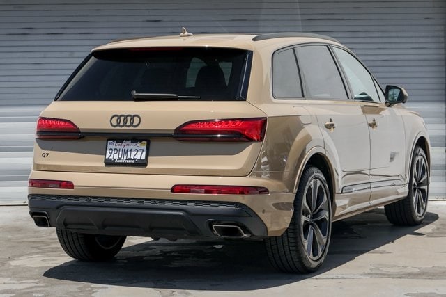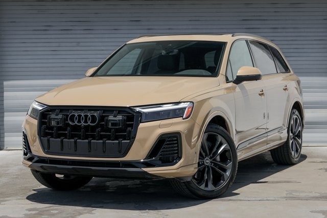 Sakhir Gold Metallic 2025 Audi Q7 55 Premium Plus quattro 8-Speed Automatic with Tiptronic 3.0L TFSI *ONE OWNER CLEAN CARFAX*, 3rd row seats: bench, 4-Wheel Disc Brakes, ABS brakes, Air Conditioning, Anthracite Gray Audi Rings, Auto High-beam Headlights, Auto-dimming Rear-View mirror, Automatic temperature control, Bang & Olufsen Premium Sound System w/3D Sound, Black Door Blades, Black Exterior Trim, Black Grille, Black Optic Package, Black Roof Rails, Black Window Surrounds, Brake assist, Convenience Package, Dark Chrome Exhaust Tips, Delay-off headlights, Dual front impact airbags, Dual front side impact airbags, Electronic Stability Control, Emergency communication system: Audi connect CARE, Exterior Parking Camera Rear, Front anti-roll bar, Front dual zone A/C, Front fog lights, Front reading lights, Fully automatic headlights, Garage door transmitter: HomeLink, Genuine wood door panel insert, Heated front seats, Heated Steering Wheel, Illuminated Door Sills, LED Interior Lighting Package Plus, Low tire pressure warning, Memory seat, Navigation system: Audi MMI Navigation plus with Touch Response, Occupant sensing airbag, Overhead airbag, Panic alarm, Power driver seat, Power Liftgate, Power moonroof: Panoramic, Power steering, Power windows, Premium Plus Package, Radio: Audi Sound System, Rear air conditioning, Rear anti-roll bar, Rear fog lights, Rear side impact airbag, Rear window defroster, Remote keyless entry, Security system, Steering wheel memory, Steering wheel mounted audio controls, Top View Camera System, Wheels: 20" 5-Double-Spoke, Wireless Phone Charging Pad.