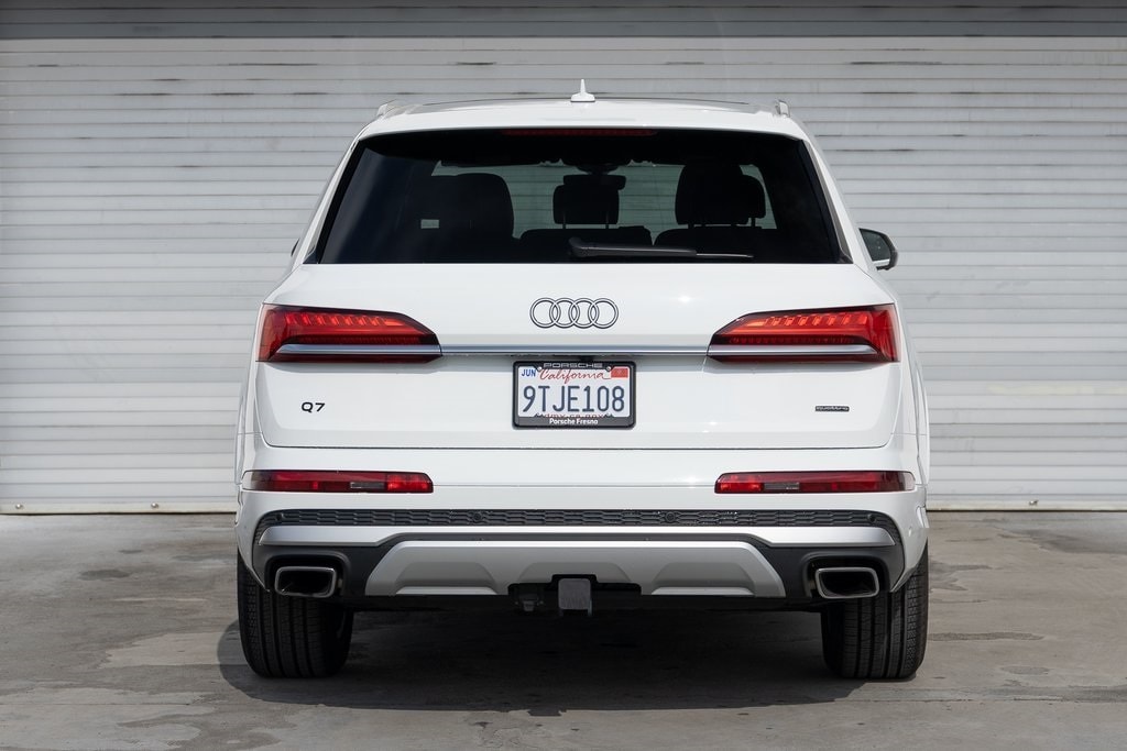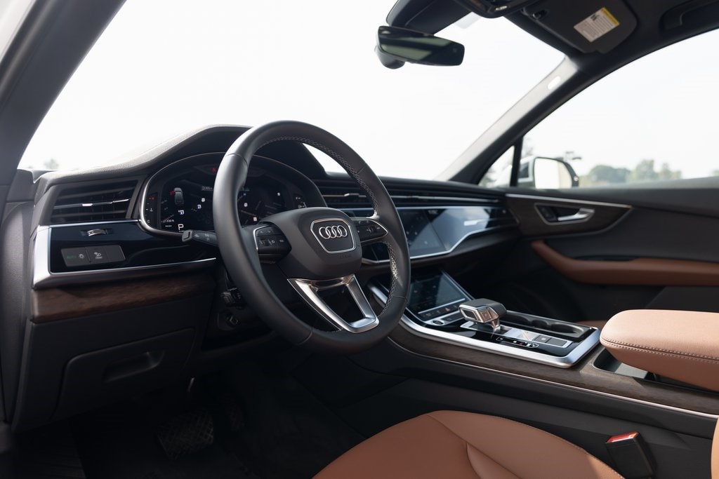 Carrara White 2025 Audi Q7 55 Premium quattro 8-Speed Automatic with Tiptronic 3.0L TFSI *ONE OWNER CLEAN CARFAX*, 3rd row seats: bench, 4-Wheel Disc Brakes, 7-Pin Adapter, ABS brakes, Air Conditioning, AM/FM radio: SiriusXM w/360L, Audi Beam Rings, Auto High-beam Headlights, Auto-dimming door mirrors, Auto-dimming Rear-View mirror, Automatic temperature control, Brake assist, Bumpers: body-color, Convenience Package, Delay-off headlights, Electronic Stability Control, Emergency communication system: Audi connect CARE, Exterior Parking Camera Rear, Four wheel independent suspension, Front dual zone A/C, Front fog lights, Fully automatic headlights, Garage door transmitter: HomeLink, Heated door mirrors, Heated front seats, Heated Steering Wheel, Leather Seating Surfaces, Memory seat, Power door mirrors, Power driver seat, Power Liftgate, Power moonroof: Panoramic, Power passenger seat, Power steering, Power windows, Privacy Trunk Cover, Radio: Audi Sound System, Rain sensing wipers, Rear air conditioning, Rear fog lights, Rear window defroster, Rear window wiper, Reclining 3rd row seat, Remote keyless entry, Speed-sensing steering, Split folding rear seat, Spoiler, Steering wheel memory, Steering wheel mounted audio controls, Telescoping steering wheel, Tilt steering wheel, Top View Camera System, Traction control, Trailer Hitch, Turn signal indicator mirrors, Variably intermittent wipers, Wheels: 19" 5-Arm-Star Design, Wireless Phone Charging Pad.