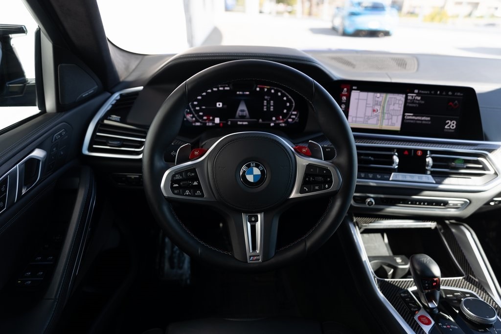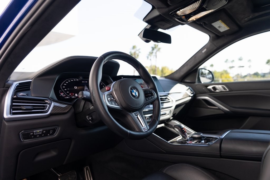 Marina Bay Blue Metallic 2023 BMW X6 M AWD 8-Speed Automatic Sport 4.4L V8 DOHC 32V TwinPower Turbo *LOCAL TRADE*, *ONE OWNER CLEAN CARFAX*, Front end XPEL Paint Protection, 4-Wheel Disc Brakes, ABS brakes, Active Driving Assistant Pro, Adaptive suspension, Air Conditioning, AM/FM radio: SiriusXM with 360L, Apple CarPlay & Android Auto Compatibility, Auto High-beam Headlights, Auto tilt-away steering wheel, Auto-dimming door mirrors, Auto-dimming Rear-View mirror, Auto-leveling suspension, Automatic temperature control, Brake assist, Delay-off headlights, Driving Assistance Professional Package, Electronic Stability Control, Emergency communication system: BMW Assist eCall, Extended Merino Leather Seat Upholstery, Extended Traffic Jam Assistant, Exterior Parking Camera Rear, Four wheel independent suspension, Front dual zone A/C, Fully automatic headlights, Garage door transmitter, harman/kardon Surround Sound System, harman/kardon® Speakers, Headlight cleaning, Heated door mirrors, Heated Front Seats, Multi-Function Seats w/Lumbar Support, Navigation System, Power door mirrors, Power driver seat, Power Liftgate, Power moonroof, Power steering, Rain sensing wipers, Rear air conditioning, Rear dual zone A/C, Rear window defroster, Remote keyless entry, SiriusXM Satellite Radio w/1 Year Subscription, Speed-sensing steering, Speed-Sensitive Wipers, Steering wheel mounted audio controls, Telescoping steering wheel, Tilt steering wheel, Turn signal indicator mirrors, Variably intermittent wipers, Wheels: 21" x 10.5" Fr & 22" x 11.5" Rr Bi-Color.