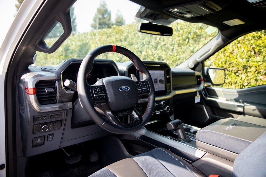 Oxford White 2023 Ford F-150 Raptor 4WD 10-Speed Automatic 3.5L V6 EcoBoost 4WD, 17" Forged Aluminum Bead-Lock Capable Wheels, 18 Speakers, Equipment Group 801A Standard, Moonroof & Tailgate, Navigation system: Connected Navigation, Power Tailgate, Radio: B&O Unleashed Sound System by Bang & Olufsen, Recaro Unique Blue Accent 40/Console/40 Front Seats, SYNC 4 w/Enhanced Voice Recognition, Twin Panel Moonroof.