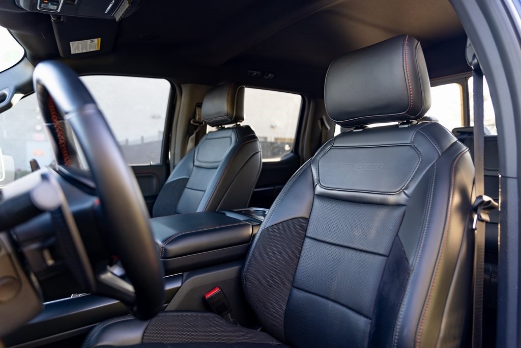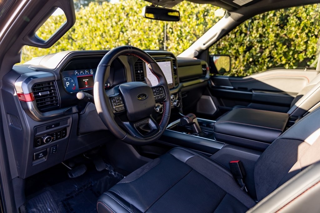 Agate Black Metallic 2025 Ford F-150 Raptor 4WD 10-Speed Automatic 3.5L V6 EcoBoost 17" Cast Aluminum Wheels, 4-Wheel Disc Brakes, ABS brakes, Air Conditioning, AM/FM radio: SiriusXM with 360L, Auto High-beam Headlights, Auto-dimming door mirrors, Auto-dimming Rear-View mirror, Automatic temperature control, Brake assist, Delay-off headlights, Emergency communication system: SYNC 4 911 Assist, Equipment Group 801A Standard, Exposed Wheel Lock Kit, Front Bucket Seats, Front dual zone A/C, Fully automatic headlights, Garage door transmitter, Heads-Up Display, Heated rear seats, Lane Departure Warning System, Memory seat, Navigation system: Connected Navigation, Pedal memory, Power door mirrors, Power driver seat, Power steering, Power windows, Radio: B&O Unleashed Sound System by Bang & Olufsen, Rain sensing wipers, Rear window defroster, Remote keyless entry, Steering wheel mounted audio controls, SYNC 4 w/Enhanced Voice Recognition, Telescoping steering wheel, Tilt steering wheel, Tough Bed Spray-In Bedliner, Traction control, Turn signal indicator mirrors, Variably intermittent wipers, Ventilated front seats.