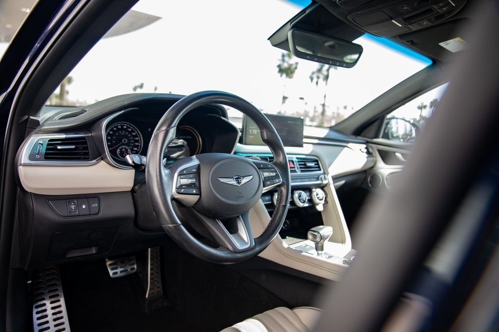 Capri Blue 2023 Genesis G70 3.3T RWD 8-Speed Automatic with SHIFTRONIC 3.3L V6 DGI DOHC 24V *ONE OWNER CLEAN CARFAX*, *RARE FIND*, Acoustic Front Door Glass, Alloy Pedals, Dark Chrome Grille & Daylight Opening Trim, Forward & Reverse Parking Distance Warning, Genesis Digital Key, Leather Seating Surfaces, Option Group 03, Power Driver Seat Bolster & Cushion Extension, Radio: AM/FM/SiriusXM/HD Lexicon Prem Audio System, Sport Advanced Package, Sport Aluminum Trim, Variable Exhaust Valve System, Ventilated Front Seats, Wheels: 19" x 8.0J Fr & 19" x 8.5J Rr Sport Alloy, Wide Sunroof, Wireless Device Charging.