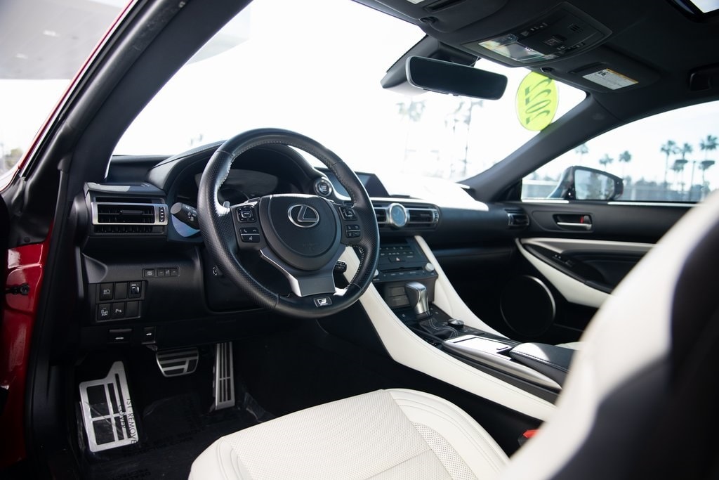 Infrared 2022 Lexus RC 350 F Sport RWD 8-Speed Automatic 3.5L V6 DOHC 24V *ONE OWNER CLEAN CARFAX*, *RARE FIND*, 4-Wheel Disc Brakes, ABS brakes, Air Conditioning, Aluminum Sport Pedals, AM/FM radio: SiriusXM, Apple CarPlay/Android Auto, Auto High-beam Headlights, Auto-dimming door mirrors, Auto-dimming Rear-View mirror, Automatic temperature control, Black Headliner, Brake assist, Electrochromic Heated Outside Mirrors w/Memory, Electronic Stability Control, Exterior Parking Camera Rear, F SPORT Black Brake Calipers, F SPORT Heated Steering Wheel w/Paddle Shifters, F SPORT Package, F SPORT Shift Knob, F SPORT Steering Wheel w/Paddle Shifters, F SPORT Tuned Adaptive Variable Suspension (AVS), Front & Rear Intuitive Parking Assist, Front dual zone A/C, Fully automatic headlights, Garage door transmitter: HomeLink, Glove Box w/Key, Heated front seats, Illuminated Door Sills (PPO), Lexus Enform Destination Assist, Lexus Enform Enform App Suite 2.0, LFA Inspired Instrumentation, Mark Levinson Premium Surround System w/DVD, Mark Levinson Surround Sound System, Memory seat, Moonroof w/Power Tilt/Slide, Navigation System w/Mark Levinson Audio Package, Perforated Leather Steering Wheel, Power door mirrors, Power driver seat, Power steering, Power Tilt/Telescoping Steering Column, Power windows, Premium Triple-Beam LED Headlamps, Rain Sensing Auto Intermittent Wipers, Rain sensing wipers, Rear window defroster, Remote keyless entry, Silver Performance Trim, Speed-Sensitive Wipers, Sport Vehicle Dynamics Integrated Mgmt (VDIM), Stainless Steel Door Sills, Steering wheel memory, Steering wheel mounted audio controls, Telescoping steering wheel, Tilt steering wheel, Variably intermittent wipers, Wheels: 19" Split-5-Spoke Alloy F SPORT.