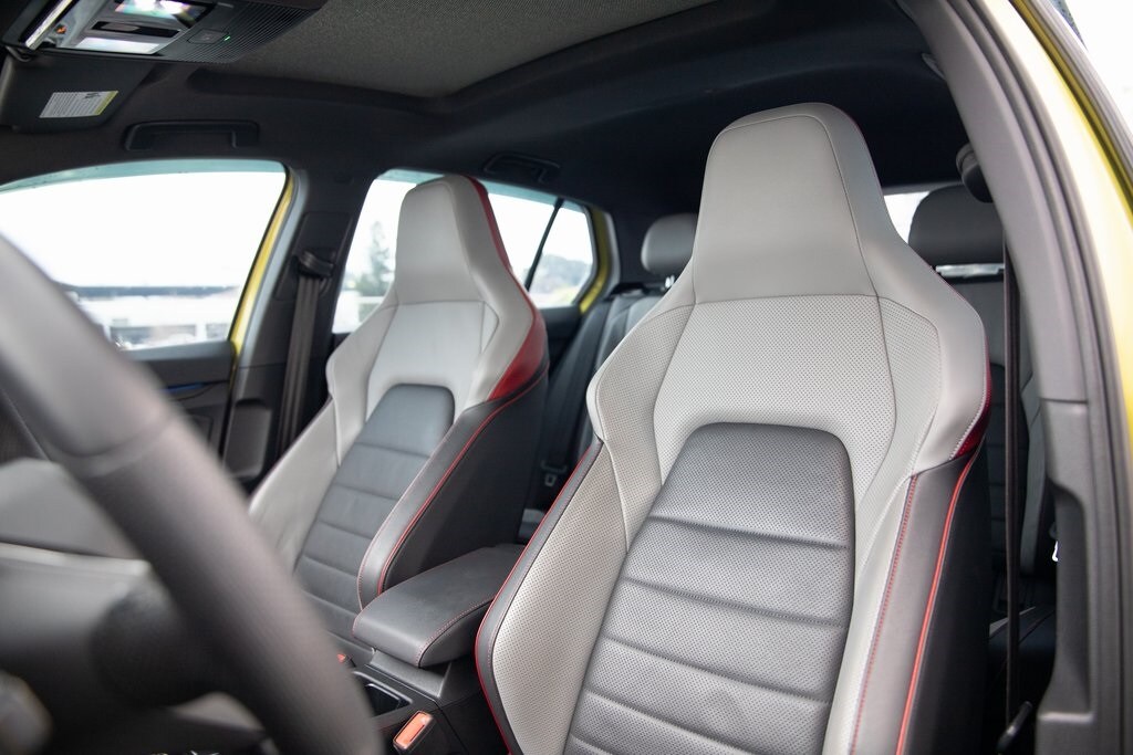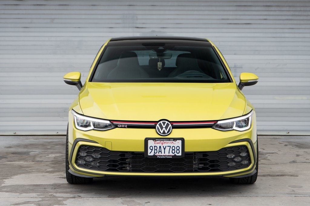 Pomelo Yellow Metallic 2022 Volkswagen Golf GTI Autobahn FWD 6-Speed Manual 2.0L TSI DOHC 4-Wheel Disc Brakes, 9 Speakers, ABS brakes, Actively Ventilated Front Seats, Adaptive suspension, Air Conditioning, AM/FM radio: SiriusXM with 360L, Auto High-beam Headlights, Auto-dimming Rear-View mirror, Automatic temperature control, Brake assist, Delay-off headlights, Electronic Stability Control, Emergency communication system: VW Car-Net services (capabilities require enrollment or subscription), Exterior Parking Camera Rear, Forward collision: FCW w/Autonomous Emergency Braking mitigation, Four wheel independent suspension, Front Bucket Seats, Front Center Armrest, Front dual zone A/C, Front fog lights, Fully automatic headlights, harman/kardon® Speakers, Heads-Up Display, Heated door mirrors, Heated front seats, Memory seat, Navigation System, Panic alarm, Perforated Vienna Leather Seating Surfaces, Power door mirrors, Power driver seat, Power moonroof: Panoramic, Power steering, Power windows, Radio data system, Radio: MIB3 Discover Pro w/10" Touchscreen Navi, Rain sensing wipers, Rear air conditioning, Rear window defroster, Rear window wiper, Remote keyless entry, Security system, Speed-sensing steering, Speed-Sensitive Wipers, Steering wheel mounted audio controls, Telescoping steering wheel, Tilt steering wheel, Traction control, Turn signal indicator mirrors, Variably intermittent wipers, Wheels: 19" x 8J 2-Tone Machined Alloy.